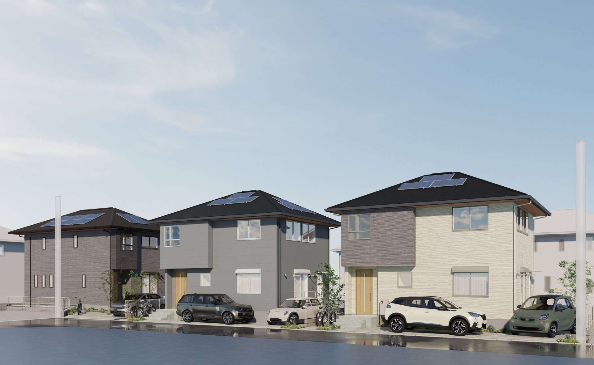 - 完成予想図はいずれも外構、植栽、外観等実際のものとは多少異なることがあります。